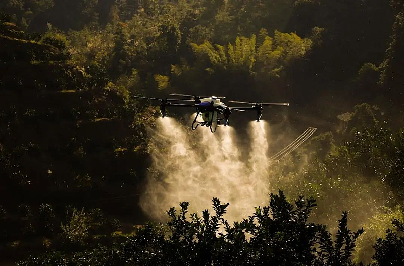 “它的雾滴很细,可以说是无孔不入吧。”王蒙恩介绍。对比人工,极目无人机作业效率更高,喷洒更精准有效,药雾弥散,所有叶片、果实都可均匀着药。经过多次飞防得到了果农认可。
