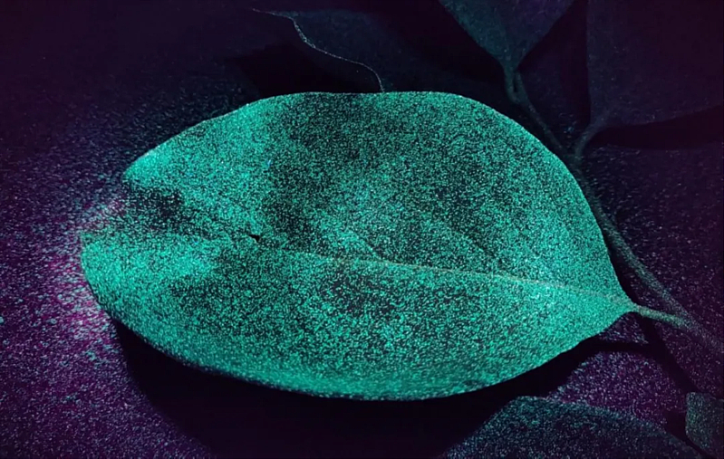 双峰弥雾喷头技术喷施后的叶片效果图