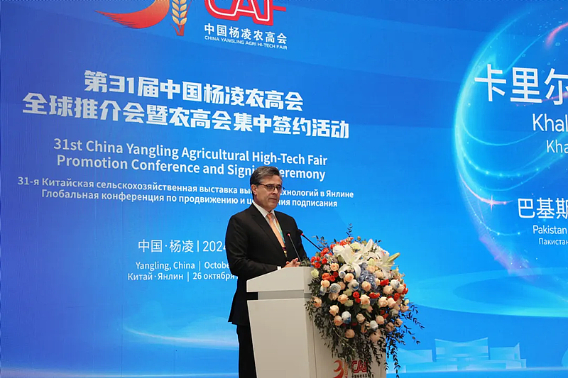 “杨凌示范区作为中国首个国家级农业高新技术产业示范区,为巴基斯坦提供了宝贵的经验。巴基斯坦渴望建立类似的区域,作为卓越中心,推动农业的研究、试验和发展。巴基斯坦在农业领域具有巨大的潜力,希望通过本届农高会向中国学习先进的农业创新技术,深化农业合作,更好地助力巴基斯坦农业发展。”巴基斯坦驻华大使卡里尔·哈什米在推介时表示。