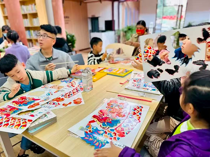 “杨小文公益课堂”之“非遗周·见生活”剪纸活动在区图书馆热闹开场。62岁的传承人刘保存手持红纸,教孩子们剪出五角星、燕子、龙等纹样,10岁的朱孜铭举着作品兴奋地说:“这是我剪的‘非遗礼物’,比买的玩具更有意义!”据了解,该课堂已开展培训14期、36场次,涵盖古琴、摄影、非遗等多元课程,惠及上千群众,满足不同群体需求。