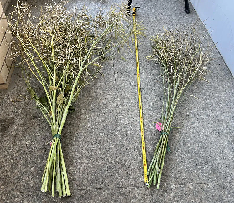 国合团队通过脱粒测产及产量结构系统分析发现,中国油菜种子的产量优势显著,增幅达32%-51%。中国油菜品种不但产量高、质量好,蛋白质含量高出对照9.69%-23.22%,其中GH2号不饱和脂肪酸亚麻酸含量高出对照31.14%,GH5号高出19.62%。中国油菜籽种子均大于对照品种,千粒重高出11.34%-48.38%。有两个品种的千粒重表现优异,较对照品种的该指标高出17%-25%。总体表现为产量高、质量好,种子大的特点。