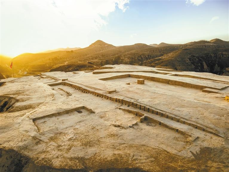 陕西清涧寨沟遗址寨塬盖夯土建筑(资料照片)。 陕西省考古研究院供图
