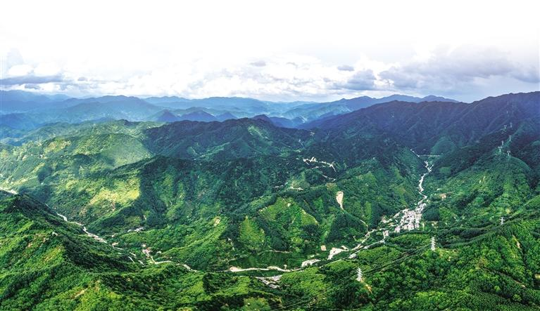 西安市蓝田县辋川镇秦岭深处郁郁葱葱(8月7日摄)。本报记者 袁景智摄