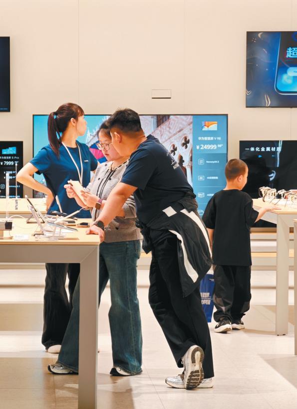 4月6日,消费者在西安龙首印象城选购手机、平板电脑等电子产品。 本报记者 许奥博摄