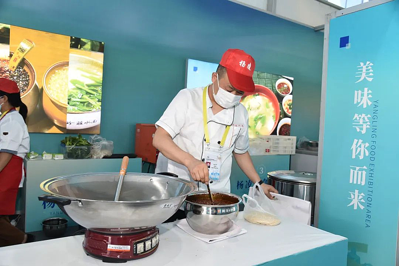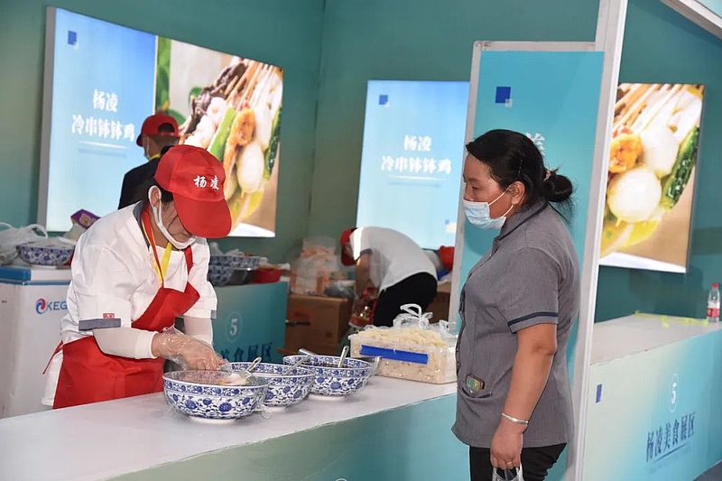 "面白薄筋光,汤汪蒜辣香,汤面分盆装,越嚼越觉香"的杨凌蘸水面和"薄、筋、光、酸、旺、香"的旗花面,这些来自杨凌的地道美食也备受青睐,来前面品尝的参会客商络绎不绝。