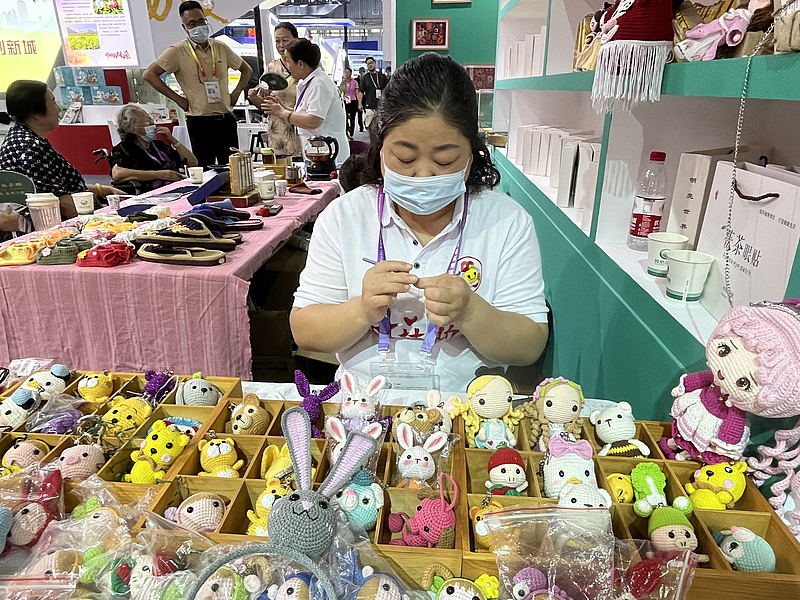 9月16日,农高会第二天,记者在省妇联展厅——巾帼科技助农暨特色产业成果展看到,编织、刺绣、布艺、面塑等妇女手工艺精品在各个展位上得到充分展示。