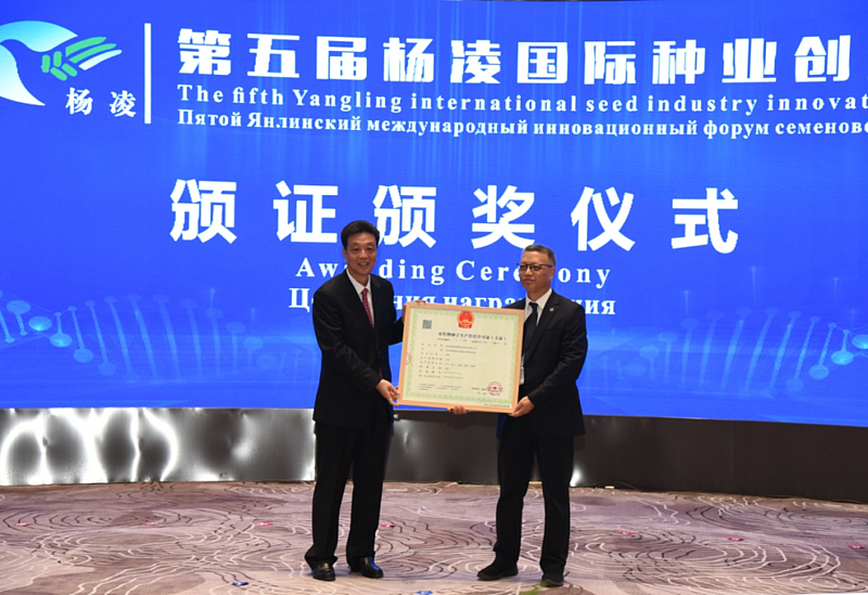9月17日,第五届杨凌国际种业创新论坛举办。会上,陕西省人大常委会副主任戴征社为陕西粮农集团颁发国家级育繁推一体化农作物种子生产经营许可证和1000万元奖金。