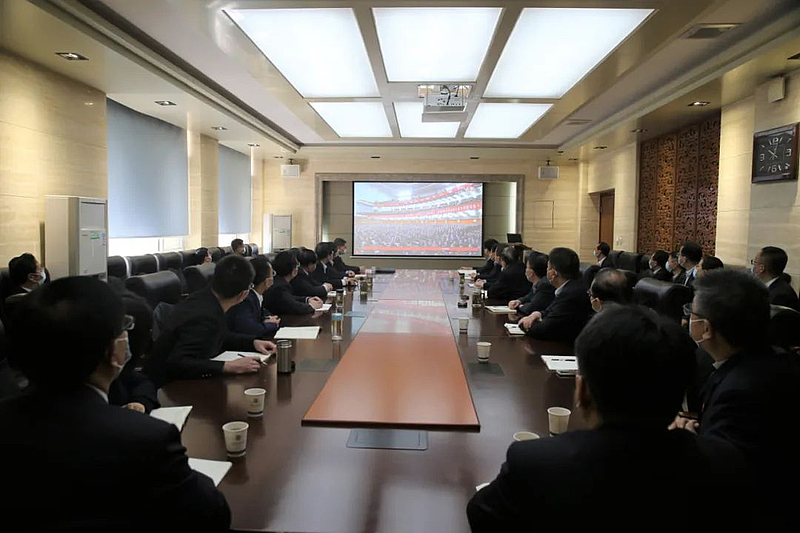 在陕西化建工程有限责任公司设备制造公司,大家坐在一起,共同见证了这一历史时刻,感受着团结、奋进的时代脉动。