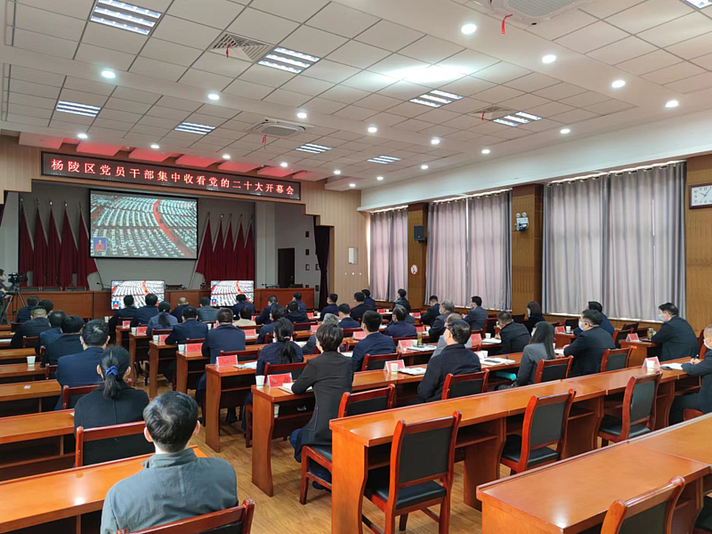 在杨陵区人民政府,杨陵区党员干部集中收看中国共产党第二十次全国代表大会开幕实况,示范区党工委委员、杨陵区委书记李函参加集中收看。区人大、区政府、区政协主要负责人及杨陵区委区政府直属单位部门负责人参加。