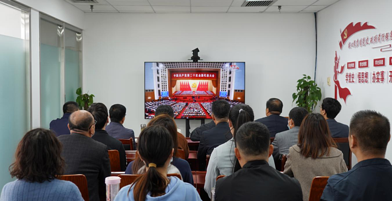 在杨凌农科传媒集团,全体党员干部集中收听收看党的二十大开幕盛况,认真聆听习近平总书记在大会上所作的报告。