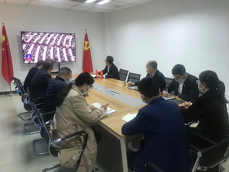 示范区党工委宣传部在办公室组织干部职工收听收看中国共产党第二十次全国代表大会开幕实况。