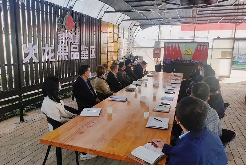 在揉谷镇青皮她园火龙果种植基地,荣获全国“人民满意的公务员集体”称号的杨陵区农业农村局集中组织观看了中国共产党第二十次全国代表大会开幕实况。