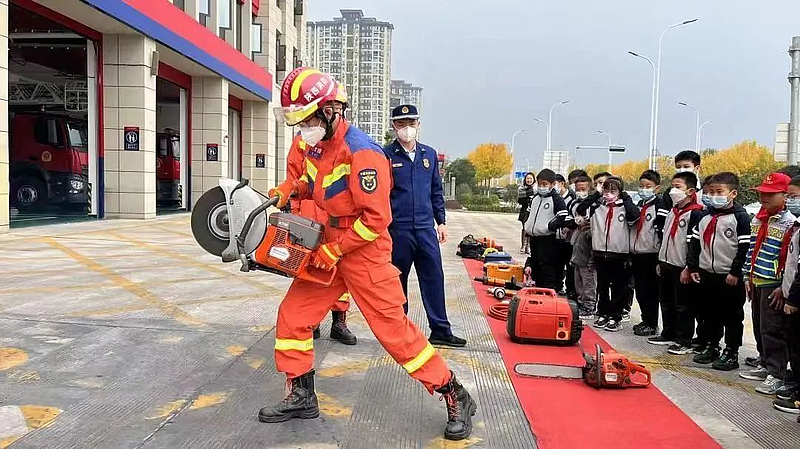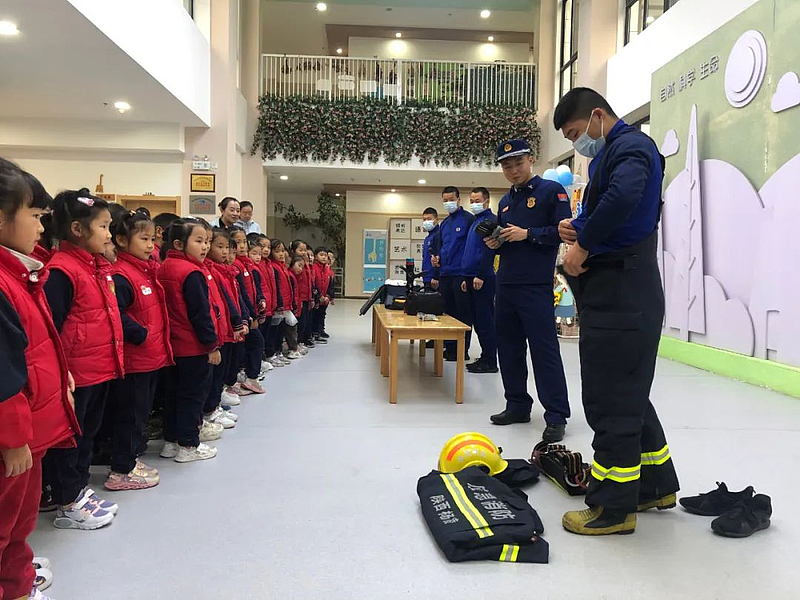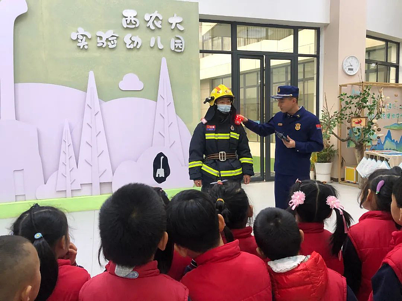 11月9日上午,在西北农林科技大学实验幼儿园里,来自杨凌示范区消防救援支队新区大队自贸大街特勤站的消防员们,为幼儿园的老师和孩子们上了一场生动的消防安全教育课。