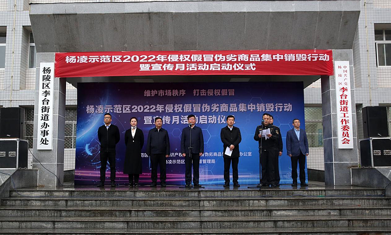 11月10日,杨凌示范区举行2022年侵权假冒伪劣商品集中销毁行动暨宣传月活动启动仪式。杨凌示范区打击侵权假冒工作领导小组组长、党工委委员、管委会副主任董立民出席并宣布活动正式启动。