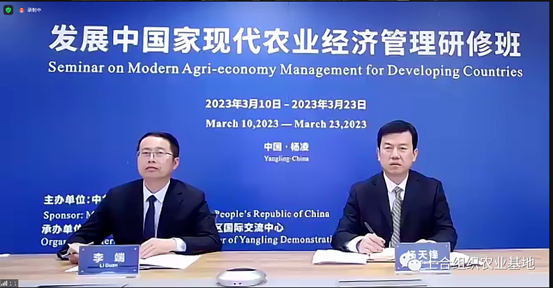 3月22日,由中华人民共和国商务部主办、杨凌示范区承办的“一带一路”国家执政能力与社会发展研修班在杨凌结业。来自亚美尼亚、柬埔寨、加纳、肯尼亚、马拉维、巴基斯坦、乌兹别克斯坦等7个国家的37位学员线上参加结业典礼。