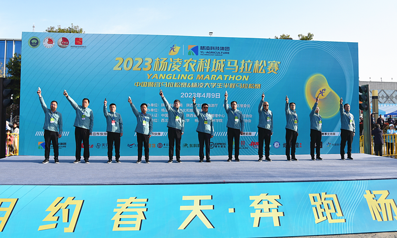 陕西省副省长徐明非,杨凌农科城马拉松赛组委会名誉主任、杨凌示范区党工委书记黄思光,组委会主任、杨凌示范区党工委副书记、管委会常务副主任史高领,陕西省政府办公厅副主任谢泱,陕西省体育局党组成员、副局长徐鹏,陕西省文化和旅游厅党组成员、副厅长盛义军,陕西省公安厅治安管理局局长张维护,西北农林科技大学党委副书记闫祖书,组委会执行主任、杨凌示范区党工委委员、杨陵区委书记李函,杨凌职业技术学院党委副书记任得元,杨凌科技集团总经理梁钦共同鸣枪。
