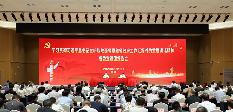 6月12日,学习贯彻习近平总书记在听取陕西省委和省政府工作汇报时的重要讲话精神省委宣讲团在杨凌示范区举行报告会。省委宣讲团成员、杨凌示范区党工委书记黄思光作宣讲报告。党工委副书记、管委会常务副主任史高领主持。党工委副书记何玲出席。