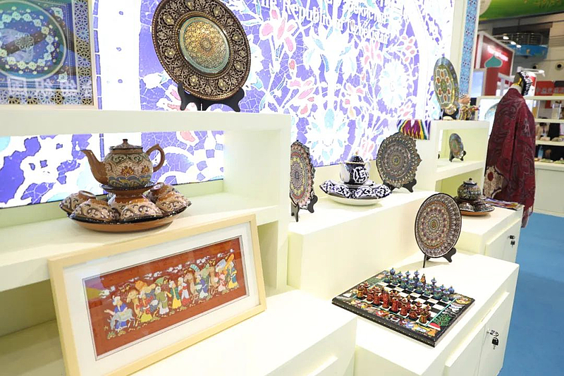 据了解,主宾国乌兹别克斯坦国家馆位于农高会C馆,共有7家单位参展,作为著名的“丝绸之路”古国,乌兹别克斯坦是对外联系和各种文化相互交流的活跃之地,国家自然资源丰富,黄金、“白金”(棉花)、“黑金”(石油)、“蓝金”(天然气)是其经济发展的四大支柱。本次展示的农产品、果蔬、草药、干果、饮用水及工艺品,更是向参会群众展示了乌兹别克斯坦独特的国家魅力。