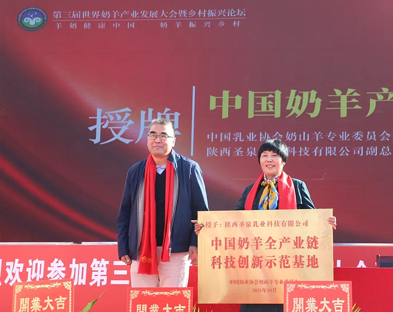 典礼上,陕西圣泉乳业科技有限公司与千阳县政府签订了奶源基地建设的合作协议,与国内外相关公司签订了战略合作协议。第三届世界奶羊产业发展大会国际专家评审委员会授予陕西圣泉乳业科技有限公司“世界羊乳加工样板工厂”荣誉称号;中国奶业协会奶山羊专业委员会授予陕西圣泉乳业科技有限公司“中国奶羊产业创新基地”荣誉称号。
