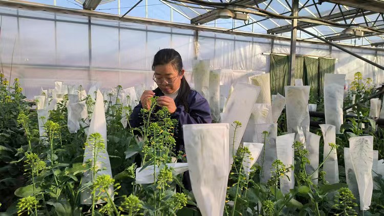 走进陕西省杂交油菜研究中心的育种加代温室,穿梭在炫目的“花海”,伴随着醉人的花香,科研人员正在进行田间性状观察记载、单株选择、挂牌套袋等工作。让老百姓的“油罐子”里装满香喷喷的菜籽油就是他们最期盼、最幸福的事儿。