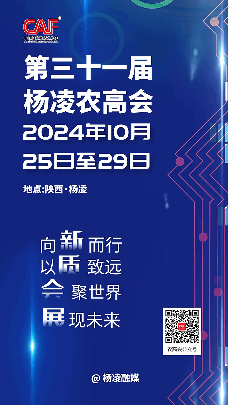 日前,记者从杨凌农高会筹委会获悉,第三十一届中国杨凌农业高新科技成果博览会定于2024年10月25日至29日在陕西杨凌举办。