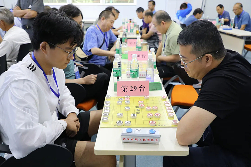 比赛现场气氛紧张而热烈,棋手们全神贯注地投入到每一步棋的思考与决策中。他们在棋盘上排兵布阵,或深思熟虑,或果断出击,展现出高超的棋艺和深厚的战术素养。