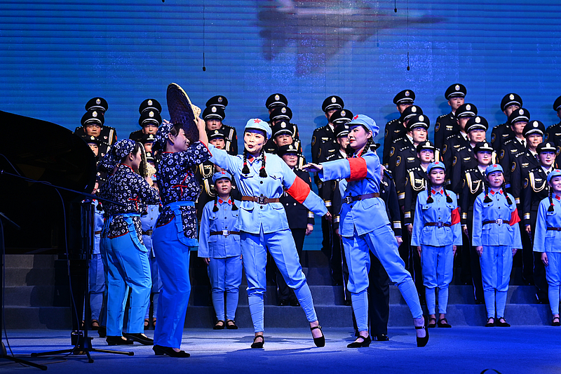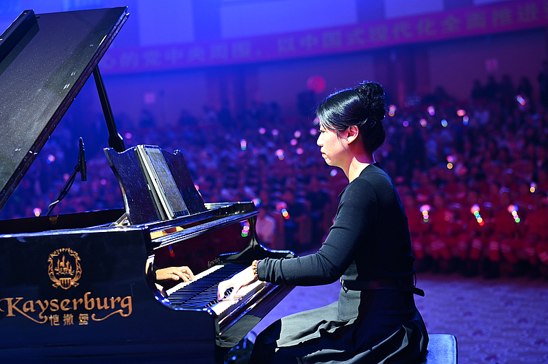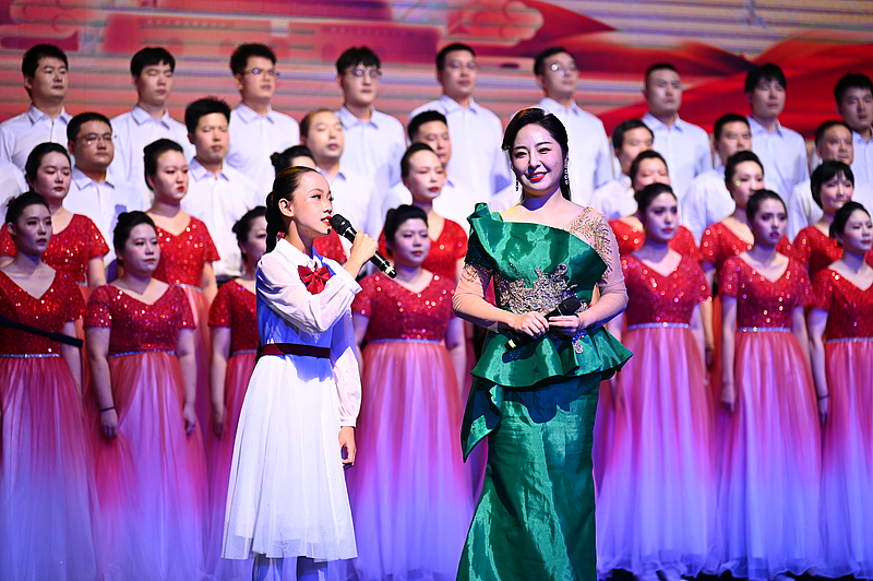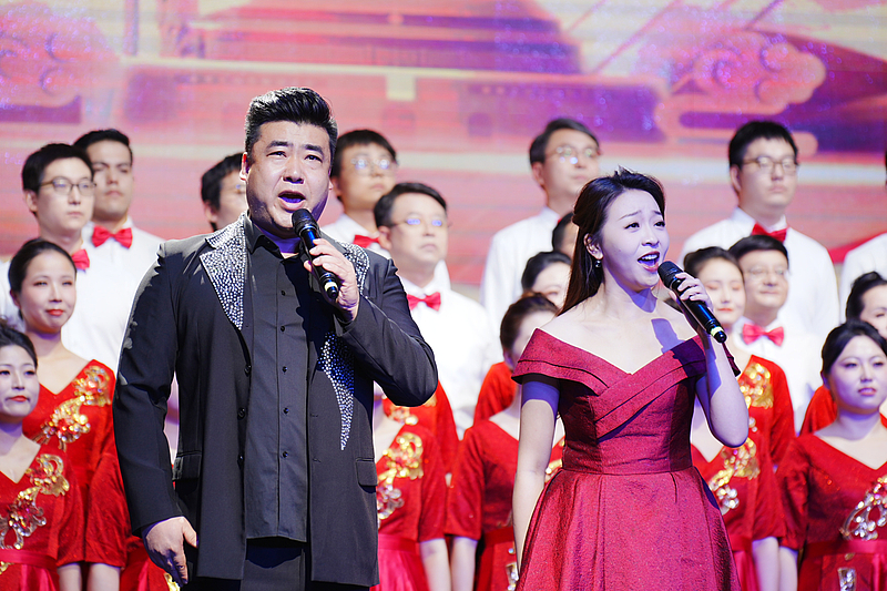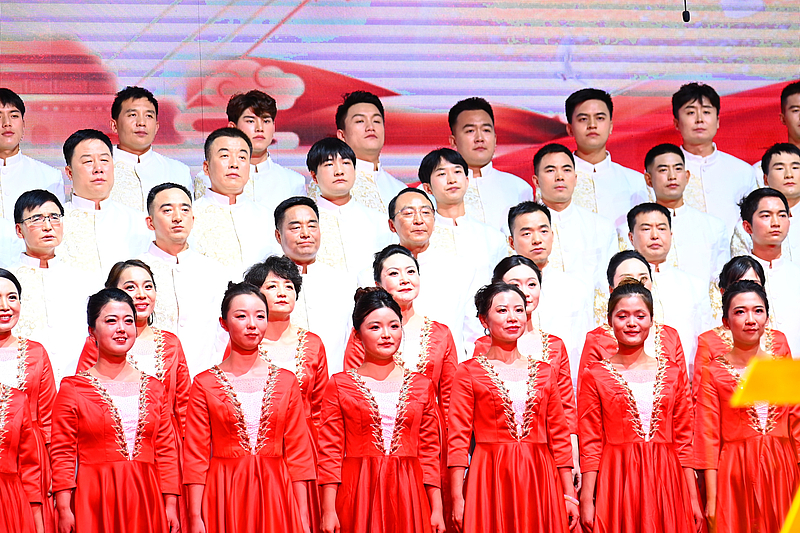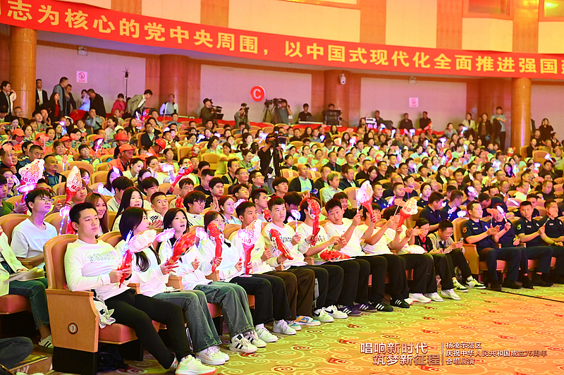 舞台上,演唱者们着装整齐、精神抖擞;舞台下,现场观众激情四射、加油助威,大家都在用炽热的情感,诠释着对祖国的热爱和对美好生活的向往。