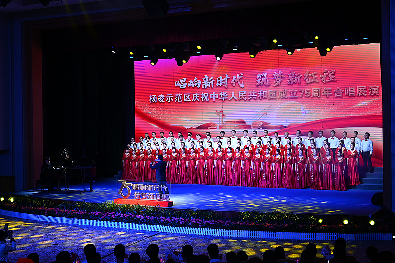 七十五载风雨兼程,七十五载波澜壮阔。在举国欢庆中华人民共和国成立七十五周年之际,9月29日晚,杨凌庆祝中华人民共和国成立75周年合唱展演在杨凌会展中心酒店三楼演播大厅举办,来自全区各条战线的11支合唱团队为祖国、为新时代放歌,用嘹亮的歌声表达对伟大祖国的热爱和祝福。