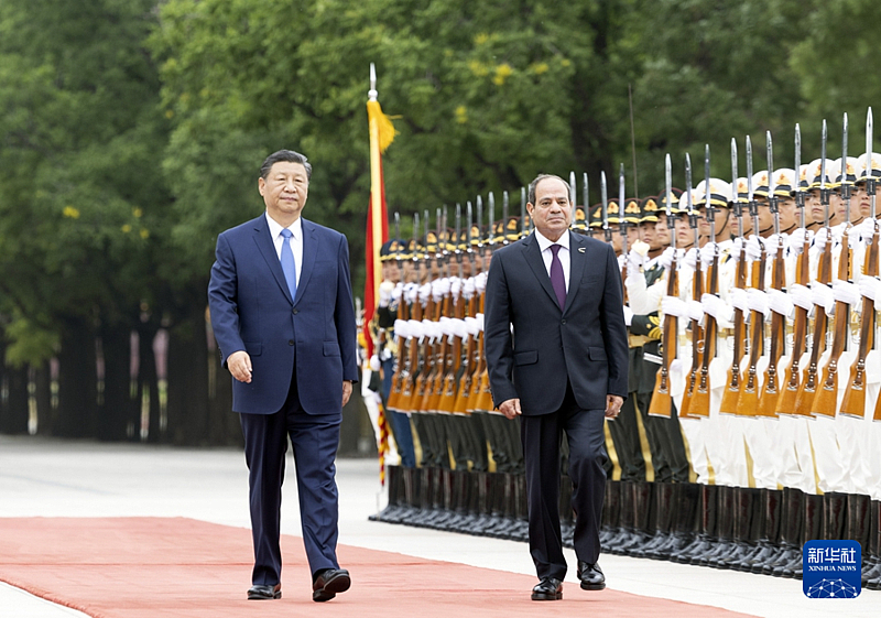 5月29日下午,国家主席习近平在北京人民大会堂同来华出席中国-阿拉伯国家合作论坛第十届部长级会议开幕式并进行国事访问的埃及总统塞西举行会谈。这是会谈前,习近平在人民大会堂东门外广场为塞西举行欢迎仪式。新华社记者 刘卫兵 摄