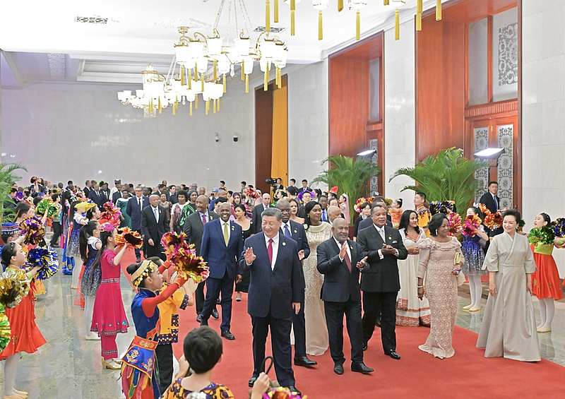 9月的北京,秋高气爽。雄伟的人民大会堂内,中国国旗和中非合作论坛成员国国旗以及非洲联盟旗帜交相辉映。
