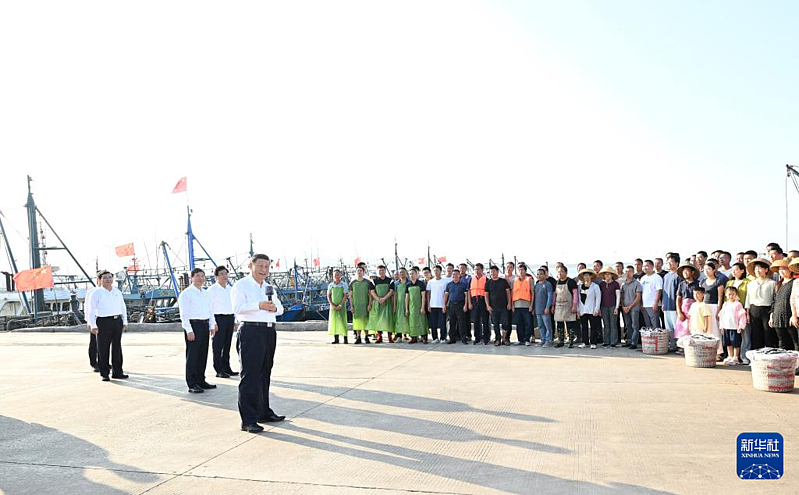10月15日至16日,中共中央总书记、国家主席、中央军委主席习近平在福建考察。这是15日下午,习近平在漳州市东山县陈城镇澳角村考察时,同渔民们亲切交流。新华社记者 谢环驰 摄