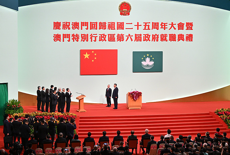 新华社澳门12月20日电 庆祝澳门回归祖国25周年大会暨澳门特别行政区第六届政府就职典礼20日上午在澳门东亚运动会体育馆隆重举行。中共中央总书记、国家主席、中央军委主席习近平出席并发表重要讲话。他指出,澳门回归祖国25年来,具有澳门特色的“一国两制”实践取得巨大成功,澳门发生翻天覆地的变化,国际影响力大幅提升。他希望,新一届澳门特别行政区政府团结带领社会各界,抢抓机遇、锐意改革、担当作为,更好发挥“一国两制”制度优势,不断开创“一国两制”事业高质量发展新局面。