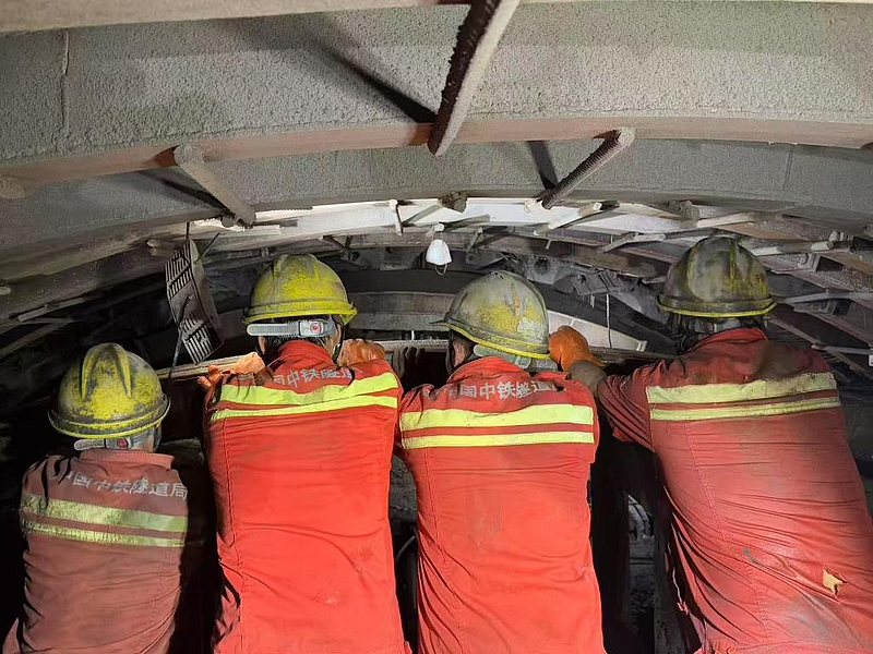 2月5日上午,建设者在滇中引水工程香炉山隧洞掌子面施工。(受访者供图)