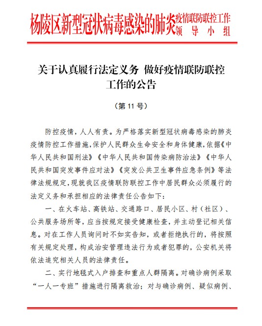 关于认真履行法定义务 做好疫情联防联控工作的公告