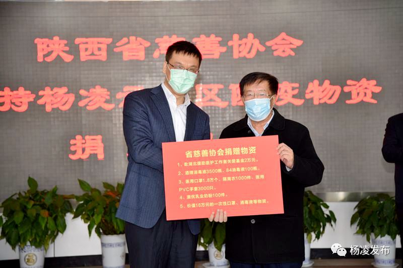董立民代表党工委、管委会向支持杨凌疫情防控的各界慈善人士、省慈善协会表示感谢。他说,新冠肺炎疫情发生以来,示范区按照党中央统一部署和省委省政府安排,果断采取有力有效措施,全区疫情防控取得阶段性成效。省慈善协会全力支持杨凌疫情防控工作,为杨凌人民增添了战胜疫情的信心和决心。相信在社会各界的大力支持下,我们必将打赢这场疫情防控人民战争、总体战、阻击战。