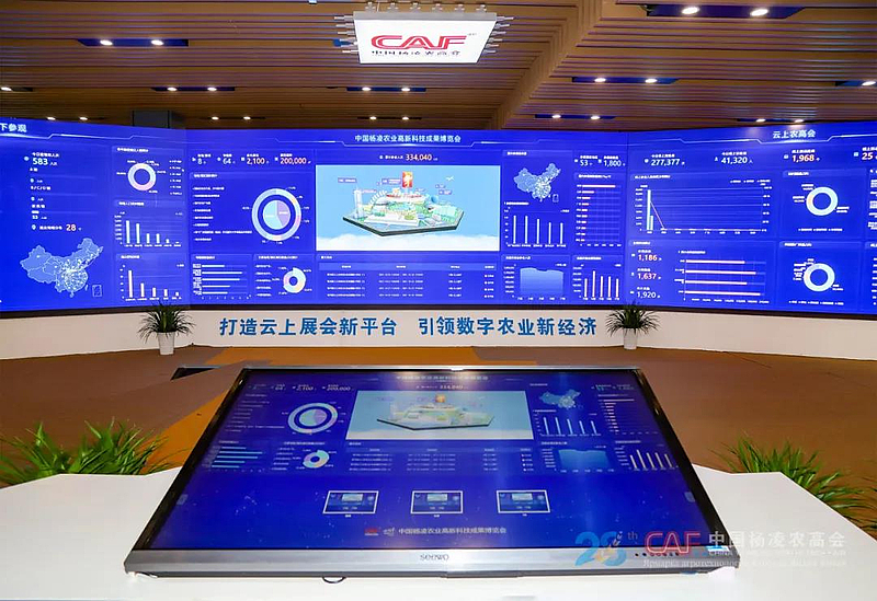 在第28届杨凌云上农高会展示中心,记者看到,本届农高会全面加强互联网、大数据、云计算、VR等新技术的应用,以线上线下深度融合的办展模式,重点打造云上展厅、云上洽谈、云上直播、云上交易等应用场景,推动展览形式多样化,观展方式智能化,运用多种形式、多样载体、多维视角,可视化呈现、互动化传播,全方位、多角度、高频次对农高会进行整体宣传,打破传统展会时间、空间限制,为参展企业和展商提供“5+360天”展览展示平台,为全球观众提供足不出户线上观展参会新通道。
