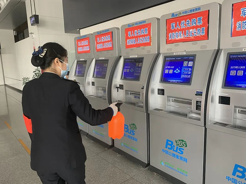 4月6日,清明小长假收假第一天,记者在杨凌汽车站进站口看到,所有乘客在入口处需要出示健康码,进行体温测量和安检后方可有序进入。工作人员每隔一段时间,都会对进站口及候车厅进行环境消杀。“我们严格执行消杀标准,对乘客频繁接触的车站安检设备、自助售票机、闸机等早晚必进行消杀,中间时段每2小时进行一次消杀。”汽车站工作人员告诉记者。
