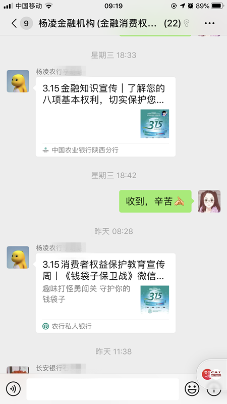 为提升金融消费者风险责任意识、权利意识,增强金融消费者风险管理能力,构建和谐的金融消费权益环境,2020年2月27日,示范区金融监管局、中国人民银行杨凌支行办公室联合组织召开“3·15金融消费者权益保护宣传日”专题部署会议,携手全辖11家金融机构开展了以“权利·责任·风险”为主题的3·15金融消费者权益保护宣传主题活动,切实保护消费者的合法权益。金融监管局负责人、人民银行杨凌支行负责人在专题部署会议上对本次活动的开展提出要求,对宣传活动进行检查督导。