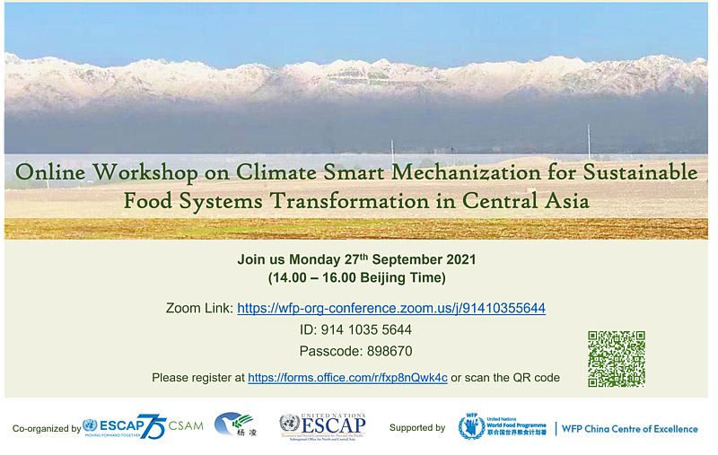 9月27日,由联合国亚太经社会可持续农业机械化中心(ESCAP-CSAM)、联合国世界粮食计划署(WFP)中国办公室、杨凌示范区管委会共同组织实施的“气候智慧型农机助力中亚地区粮食系统转型”线上研讨会成功举办。据统计,共有来自中亚、东南亚以及非洲的97位政府官员和专家参加了此次线上研讨会,并在线互动交流。