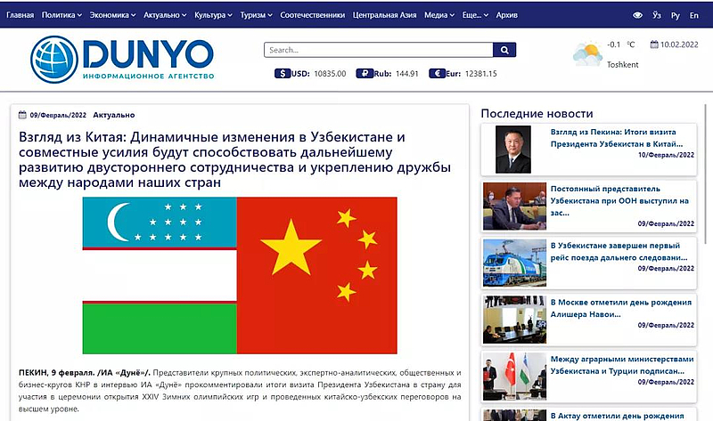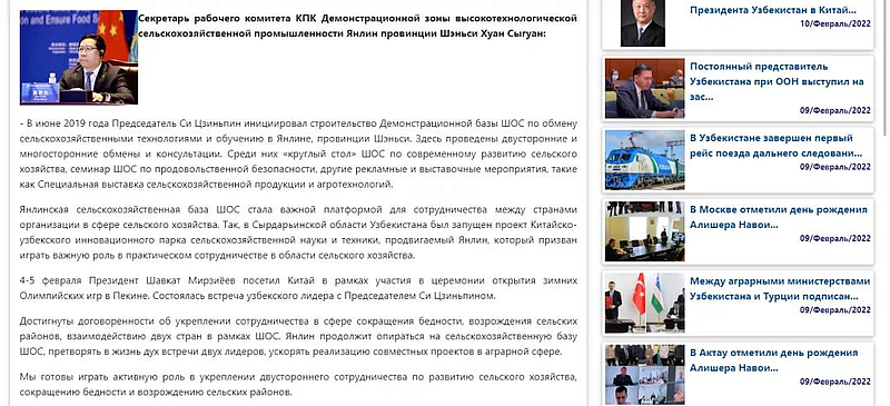 2月9日,乌兹别克斯坦DUNYO通讯社以《中国视角:乌兹别克斯坦的蓬勃发展及中乌两国协力推进双边合作,加强两国人民间友谊》为题对两国之间推进双边合作事宜进行了专题报道,其中书面专访了杨凌示范区党工委书记黄思光。采访中,黄思光简要回顾了上合组织农业技术交流培训示范基地建设历程,高度评价中国—乌兹别克斯坦农业科技创新园项目取得的重要成果,并表示将继续依托上合组织农业基地在中乌合作中贡献“杨凌力量”。