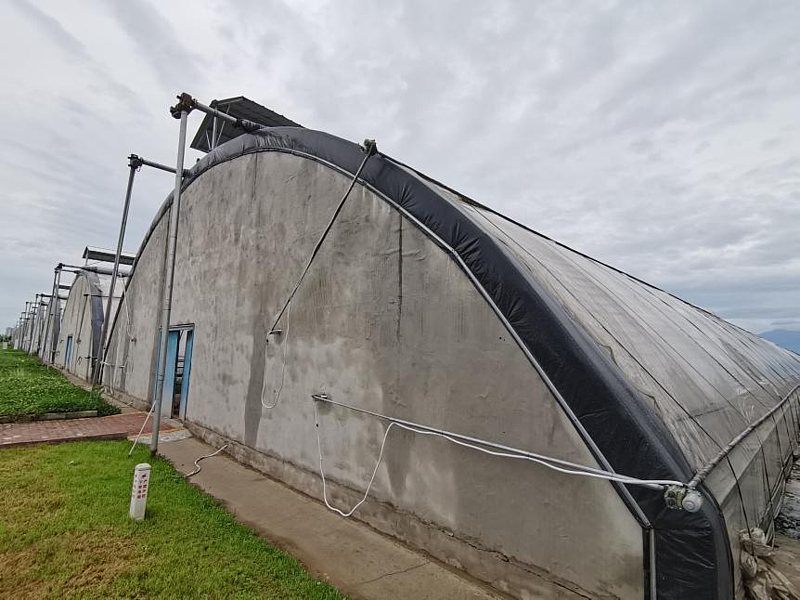 园区光电驱动主动采光储能温室。该温室采用的技术为邹志荣教授主持研发,温室屋面可自动升降,最大限度的利用了太阳能。