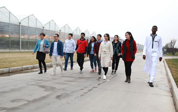 西北农林科技大学国际学院师生在杨凌智慧农业示范园参观学习。