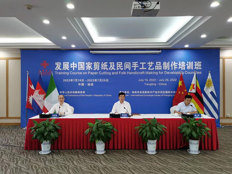 7月29日,由中华人民共和国商务部主办、杨凌示范区承办的发展中国家剪纸及民间手工艺品制作培训班在杨凌结业。来自尼泊尔、柬埔寨、尼日利亚、津巴布韦、乌拉圭等5个国家的33名学员以线上方式参加了结业典礼。