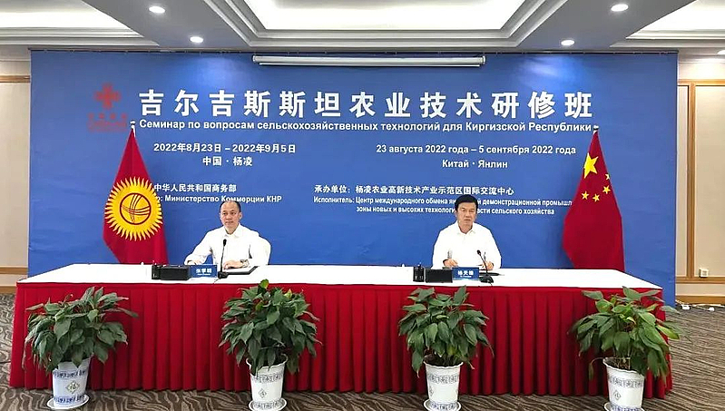 图为:9月6日,由中华人民共和国商务部主办、杨凌示范区承办的吉尔吉斯斯坦农业技术研修班在杨凌结业。
