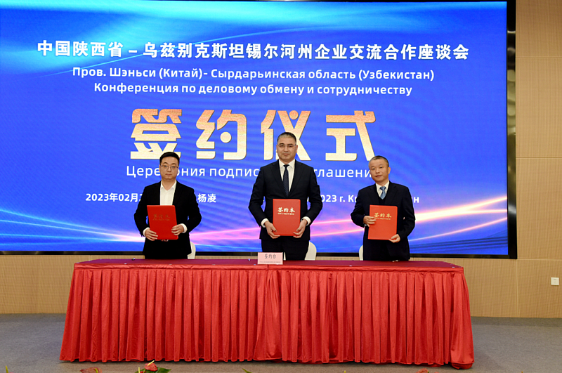 2月22日,由陕西省商务厅、省人民对外友好协会和示范区管委会主办的中国陕西省——乌兹别克斯坦锡尔河州企业交流合作座谈会在杨凌举办。乌兹别克斯坦锡尔河州州长马赫穆达利耶夫、杨凌示范区党工委副书记、管委会常务副主任史高领出席会议并致辞,乌兹别克斯坦锡尔河州副州长波提洛夫作投资环境推介。示范区党工委副书记何玲主持会议。陕西省人民对外友好协会专职副会长曹辉、陕西省商务厅二级巡视员昌利出席会议。