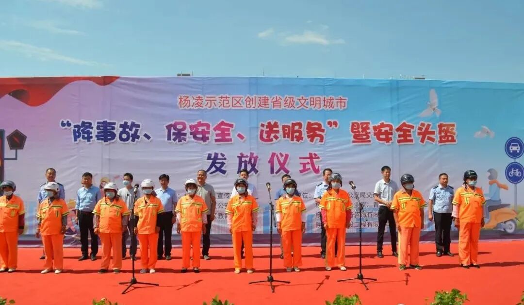 6月23日下午,杨凌创建省级文明城市“降事故、保安全、送服务”暨安全头盔发放仪式在会展南广场举行。