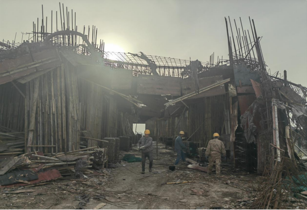 杨陵区某工地动火作业人员未经审批在楼顶进行动火作业。