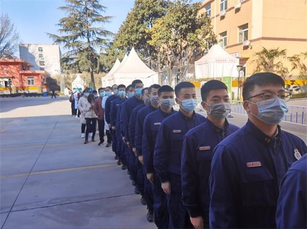 为全力做好队伍疫情防控工作,确保队伍安全稳定,杨凌支队积极汇报,多方协调,2月20日,组织全体指战员、政府专职队员和消防文员前往杨凌示范区医院统一接种新冠疫苗。