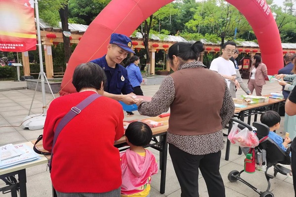 活动现场,人头攒动、热闹非凡,大队通过设立咨询台、发放宣传资料、设置宣传展板等方式,向社会群众宣传普及消防安全知识。在咨询台前,大队准备了大量以防火、灭火、逃生常识为主题的宣传资料和印有防火标语的围裙、雨伞等宣传产品向过往群众发放,并耐心向他们讲解如何拨打火灾报警电话、日常生活用火用电常识、火灾预防知识和如何扑灭初期火灾、如何逃生自救及地震逃生自救等基本安全常识。