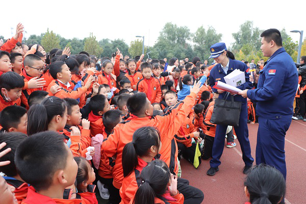 活动中,消防宣传人员针对小朋友们年龄小、好奇心强的特点,用通俗易懂的语言、生动形象的向小朋友们讲解了日常防火知识,并通过消防知识与实物相结合,采取提问互动的方式,在一问一答的过程中,用小朋友喜闻乐见的方式,讲解了遇到火灾时应该如何逃生自救、如何正确拨打火警电话、如何远离火灾等知识。随后,宣传人员现场对各类器材装备的名称、性质、用途进行了详细的介绍和展示,并在消防员的指导下学生们穿戴防护服,实实在在过足了一把“消防瘾”。最后,宣传人员提醒小朋友们不玩火、不用湿手碰触电源插座、在家告诉家人厨房用火不离人、电动车不入户等,养成良好的消防习惯。